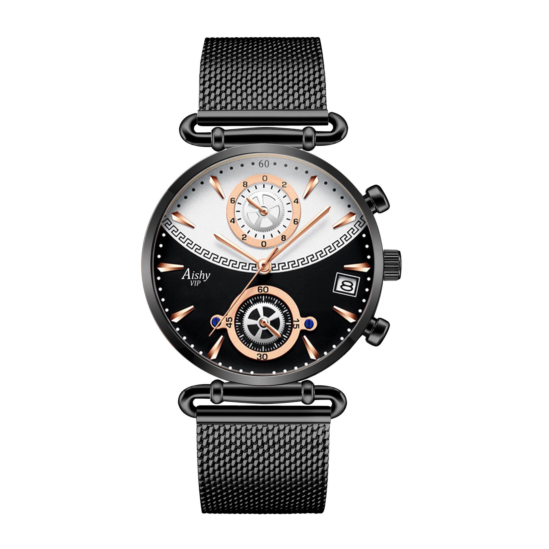 Водонепроницаемые кварцевые часы из нержавеющей стали для пар Aishy - Новая популярная модель для студентов