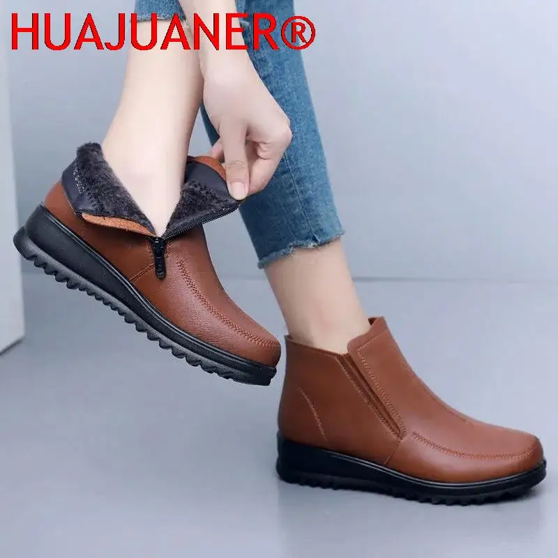 Водонепроницаемые повседневные меховые ботинки Mom, женская зимняя обувь 2022, женские ботильоны из натуральной кожи, женские теплые ботинки н...