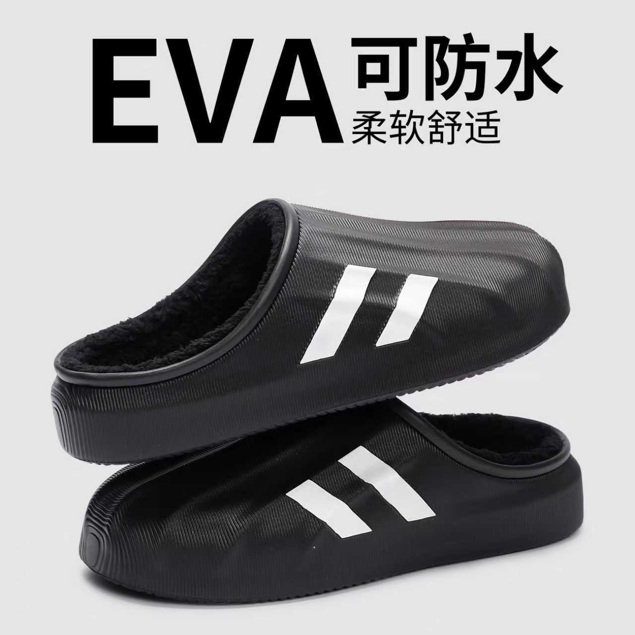 Водонепроницаемые хлопковые туфли мужские новые на толстой подошве нескользящие домашние EVA для ношения в помещении и на улице плюшевые теплые хлопковые туфли 42-43 чёрный