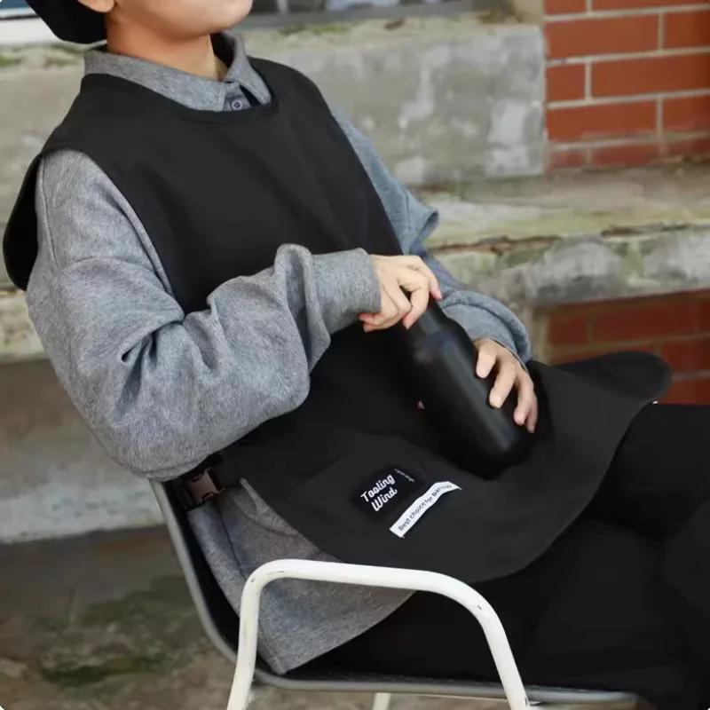 Водонепроницаемый и устойчивый к пятнам фартук из однотонного нейлона в стиле жилета. Фартук с рукавами, который носят повара и официанты. чёрный