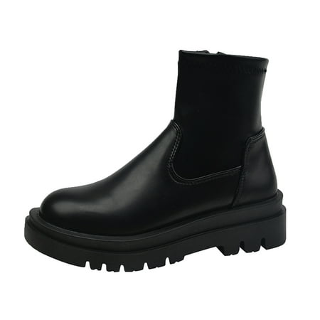 Ladies Casual Comfort Boots Shoes Fashion Women Artificial Leather Solid Color Autumn Thick Sole Flat Zipper Short Booties Round Toe Shoes