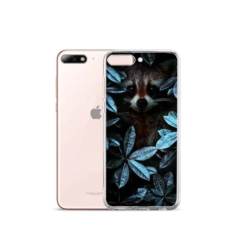 Lovely animal Raccoon flower cute Phone Case Transparent for iPhone Samsung A S 11 12 6 7 8 9 30 Pro X XS Max XR Plus lite