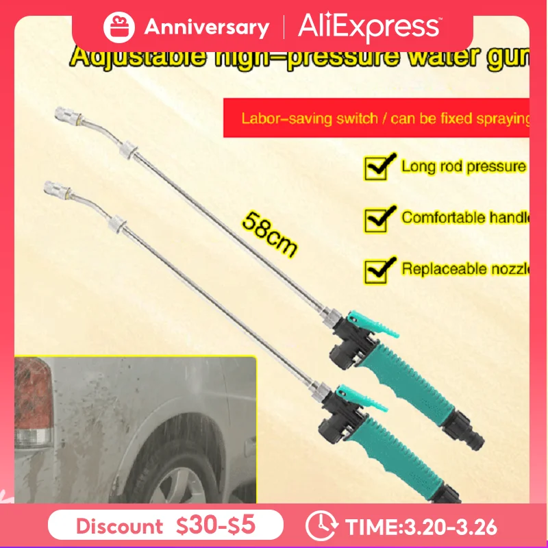 Водяной пистолет высокого давления, регулируемый распылитель для мойки автомобилей, 56 см