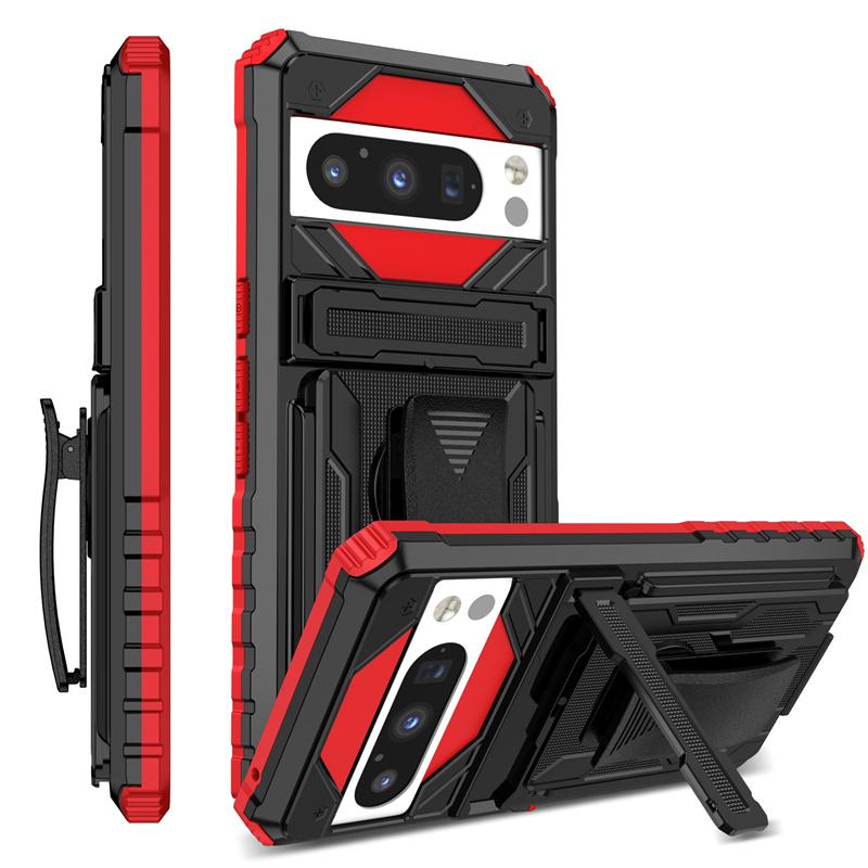 Военный прочный бронированный чехол для Google Pixel 8 Pro, чехол с креплением на ремень, кобура, защитная подставка, полный защитный чехол For Pixel 8 Pro красный