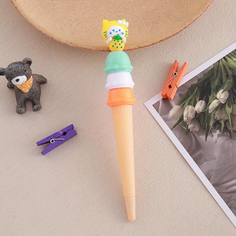 Возвращение в школу, 10 шт. 0,5 мм, гелевая ручка в форме конуса в виде кота, ручка в форме милого канцелярского товара для студентов, ручка для мороженого, ручка для подписи жёлтый