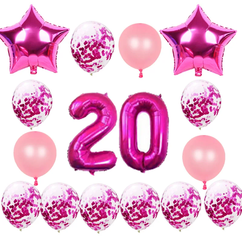 Воздушные шары 16 шт./лот для взрослых на день рождения, 10, 20, 30, 50, розово-красный шар, шары с конфетти, украшения для дня рождения, годовщины ве...
