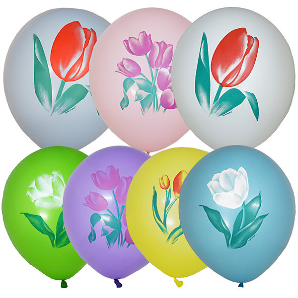 Воздушные шары Latex Occidental «Тюльпаны» украшены рисунком с одной стороны шара. Шары подходят для украшения помещения к 8 марта или дню рождения.