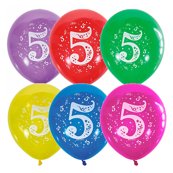Воздушные шары Latex Occidental "Цифра Пять" 10 шт, пастель + декоратор, Разноцветный, Воздушные шары Latex Occidental "Цифра Пять" 10 шт, пастель + декоратор