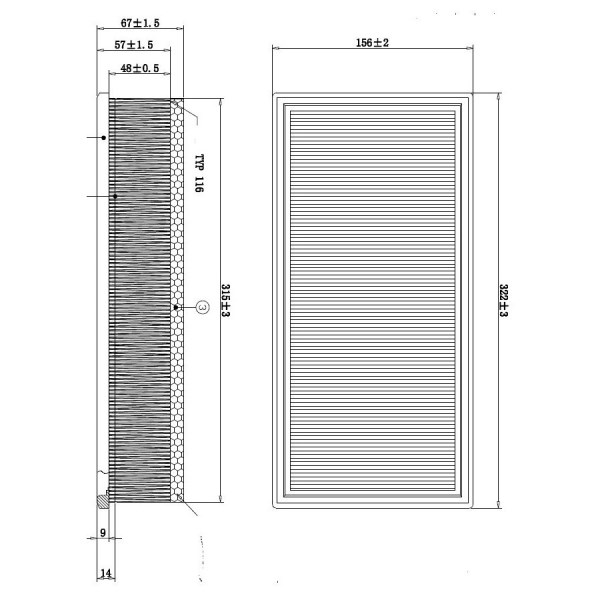 Воздушный фильтр Double Force, панельный для Peugeot, Citroen (DFA33156)
