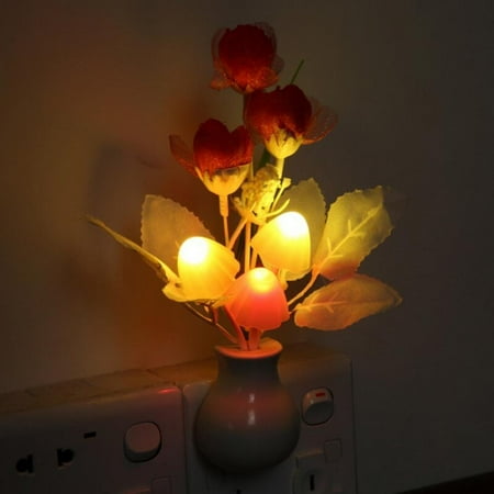 LED Night Light Novelty Silicone Flower Romantic Bed Sensor Lamp Home Decor 220V US Plug