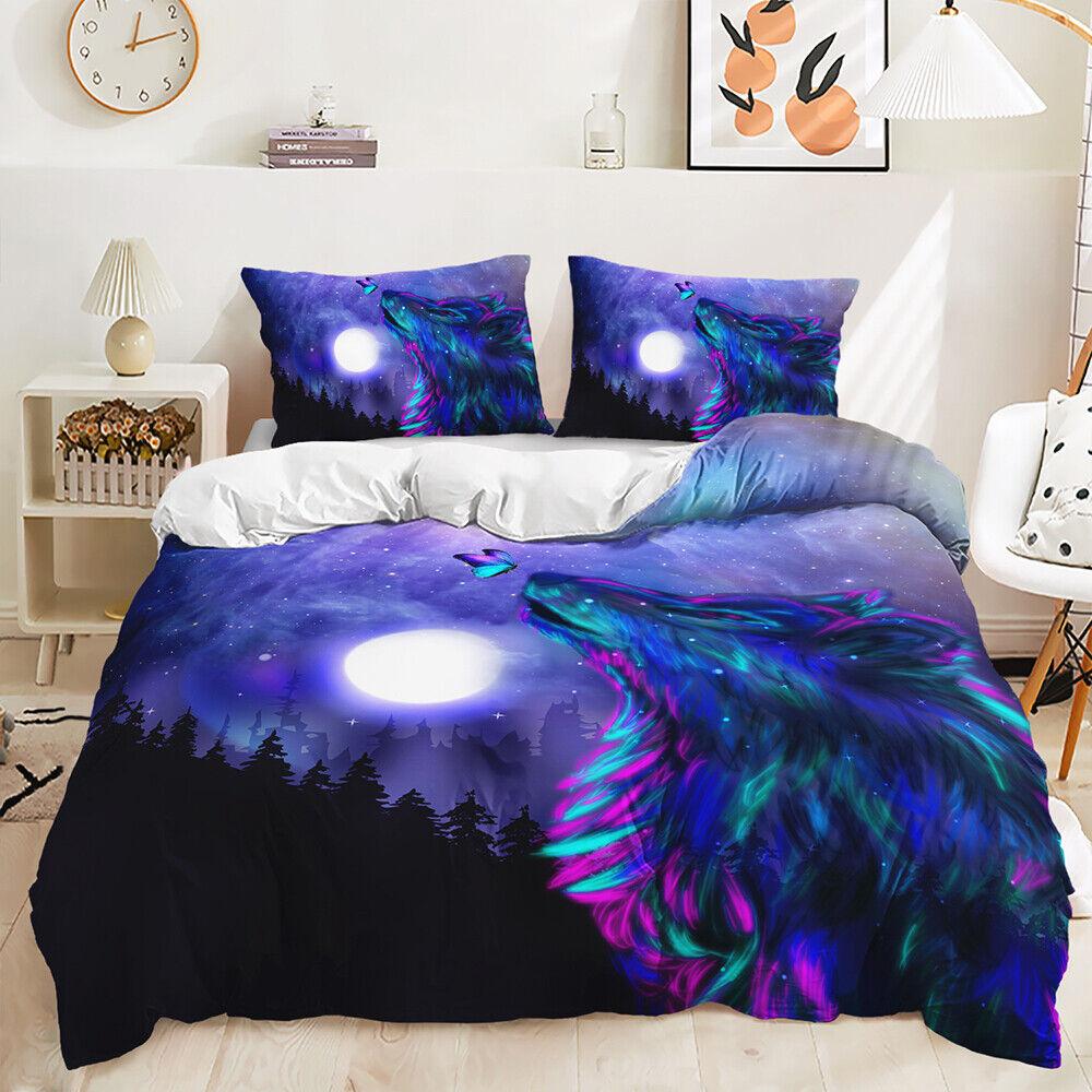 Волк Ловец снов перья цветочный красочный животный принт пододеяльник набор Single 135x200cm