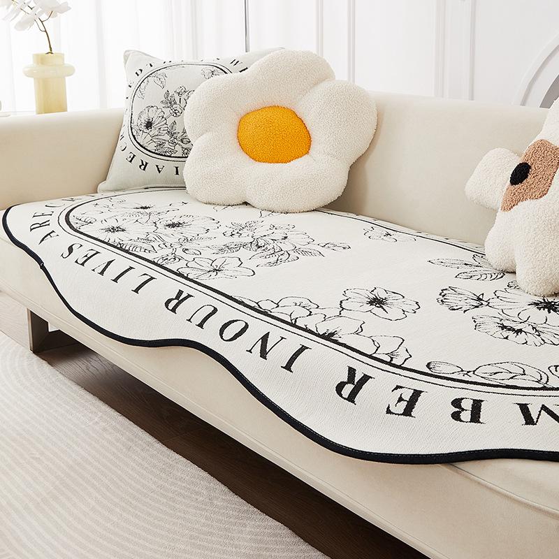 Волнистая подушка для дивана специальной формы Four Seasons Универсальная кожаная подушка неправильной формы для гостиной Черно-белая клетчатая нескользящая подушка для дивана Полотенце 70*70cm