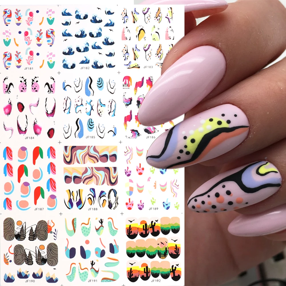 Волнистые линии, Водные Наклейки для ногтей, мраморные наклейки для ногтей, летнее украшение, неоновые волнистые геометрические слайдеры, Переводные татуировки для маникюра