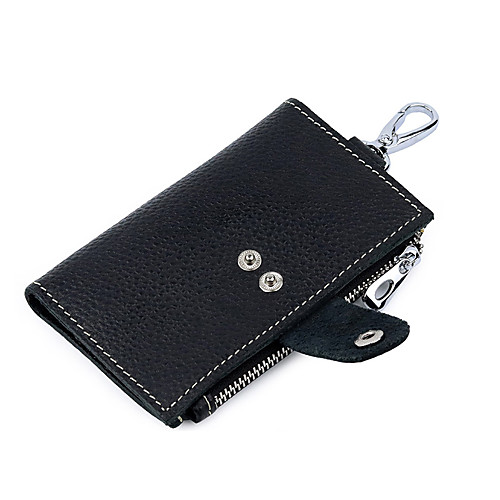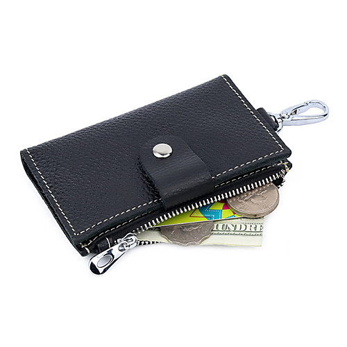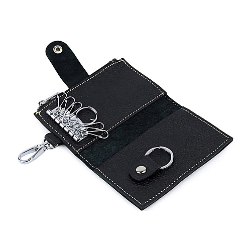 Воловья кожа Пуговицы / Молнии Ключница Сплошной цвет Повседневные Черный / Кофейный
