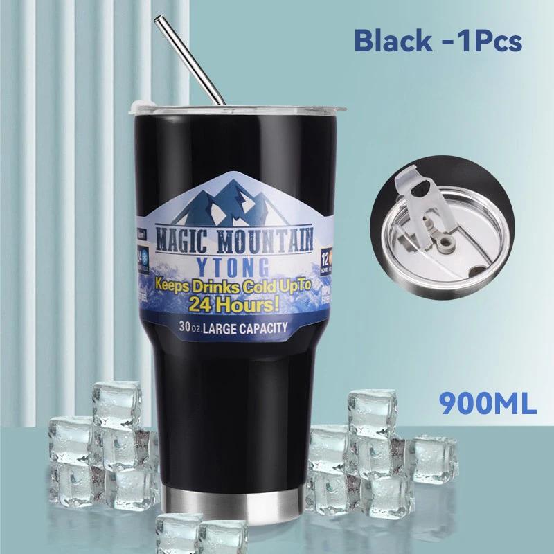 Волшебная чашка-термос из нержавеющей стали с соломой, льдом, кофейным напитком, бутылка с вакуумной изоляцией, автомобильная дорожная уличная горная чашка 900ML