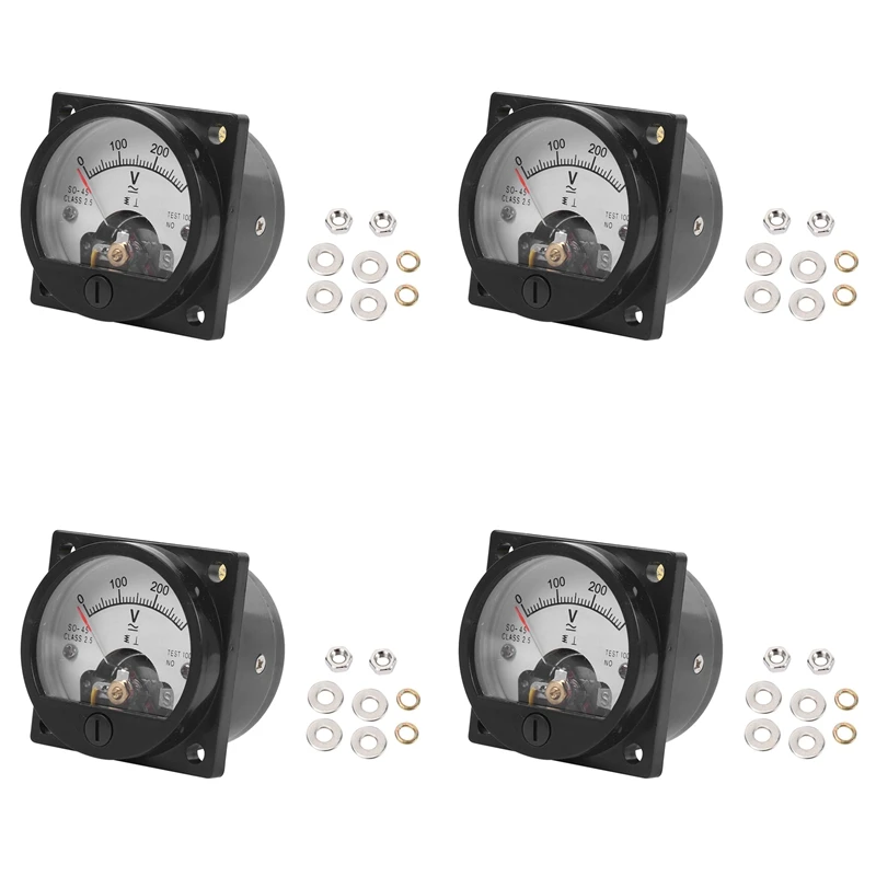 Вольтметр с круглым аналоговым циферблатом, 4 шт., 0-300 В переменного тока, черный