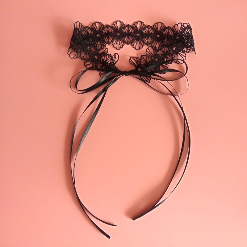 Воротник на шнуровке, короткое кружевное ожерелье, ремешок на шею, имитация воротника, черный и белый.
