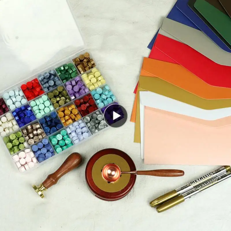 Восковая печать, бусины с восковым уплотнением, уплотнитель для воска, восковая печать, ручка, восковая печать, разноцветный конверт для украшения подарка