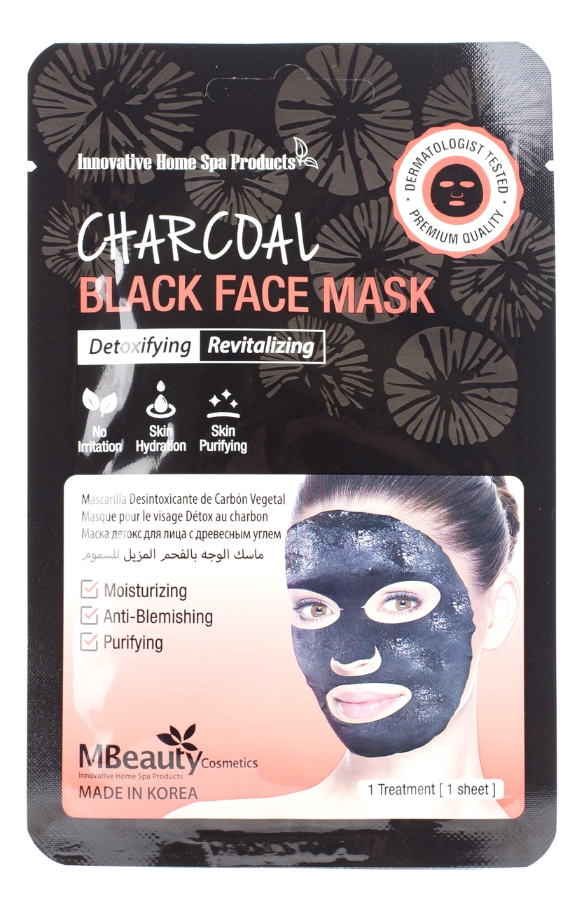 MBeauty восстанавливающая тканевая детокс-маска для лица с древесным углем charcoal black face mask 23мл — купить тканевую маску для лица в интернет-магазине по выгодной цене, посмотреть фото, отзывы на Randewoo.ru