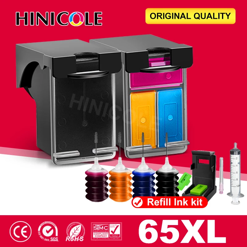 Восстановленный черный/цветной чернильный картридж 65 65XL для замены Совместимый с HP Deskjet 2620 2621 2622 2623 2624 Envy 5000 5010
