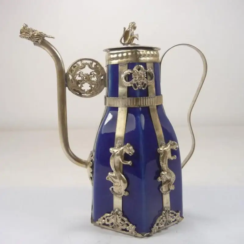 Восточный Винтаж ручной работы серебро ФАРФОР дракон чайник с декором в виде обезьяны