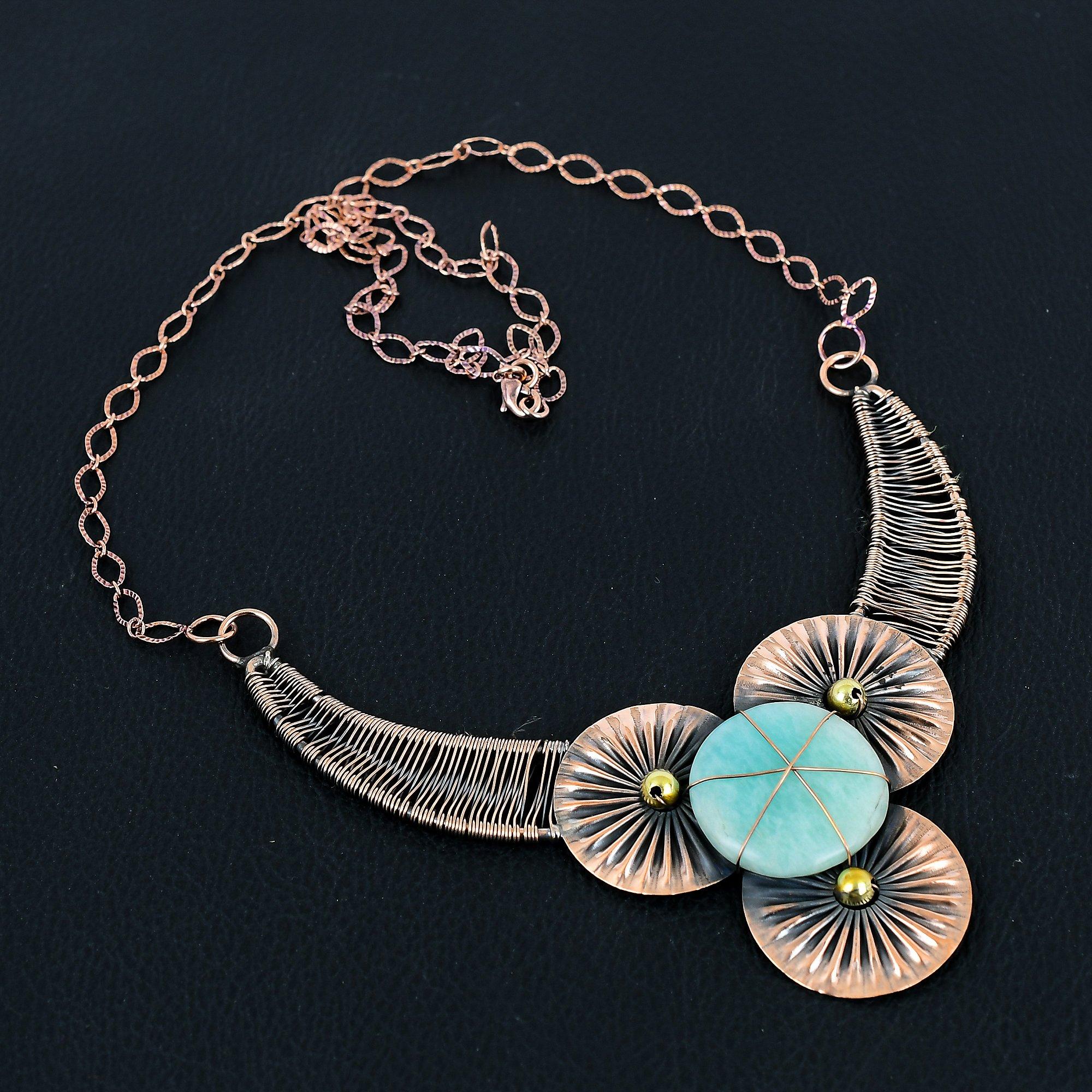 Восхитительное ожерелье ручной работы из медной проволоки с драгоценным камнем амазонит для нее 18 Inches синий