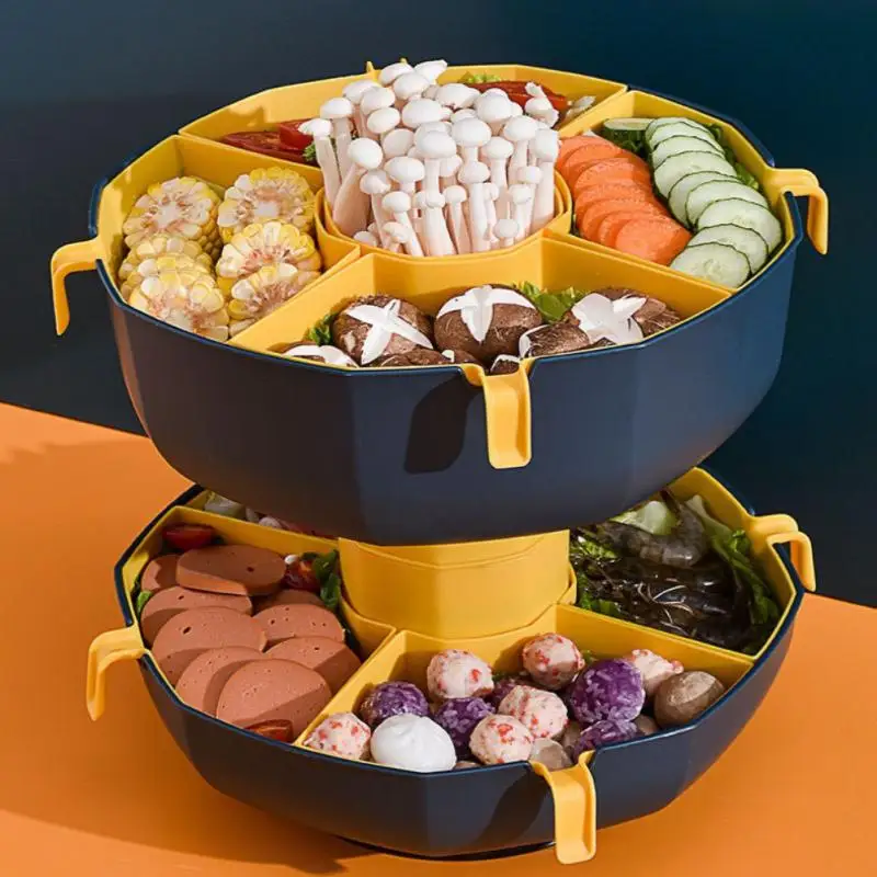 Вращающаяся на 360 ° подставка для овощей и фруктов с ручкой, сушильный держатель, Портативная подставка под горячий горшок, боковая тарелка, ...