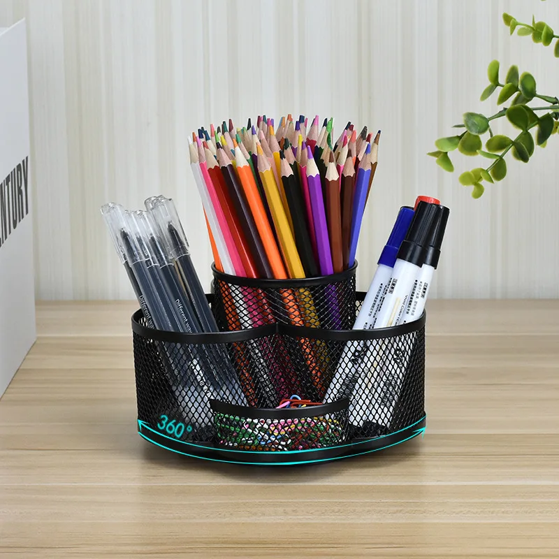 Вращающаяся ручка, контейнер, настольный органайзер, металлическая ручка с несколькими отсеками, вращающаяся на 360 градусов ручка, контейнер, Настольный Органайзер