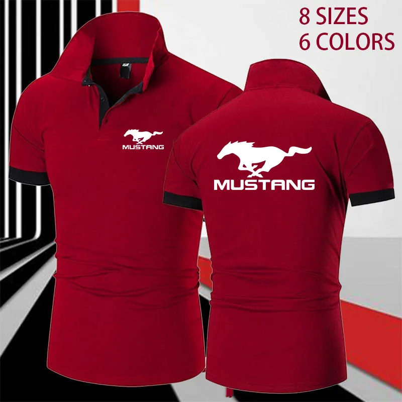 Men's Polo Shirt MUSTANG Print Summer Stitching Short Sleeve Polo Shirt Personality Slim Fit Business Shirt Casual Golf Wear