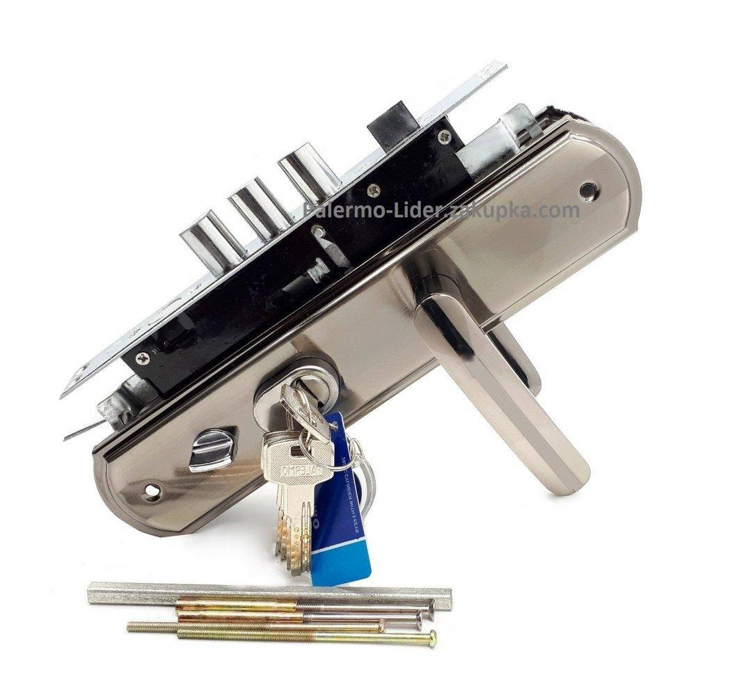 Врезной замок для китайских дверей круглый ригель с ручками на планке