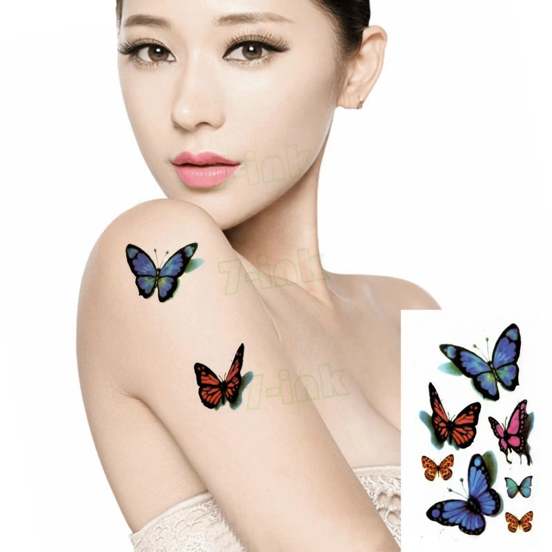 Временная тату-наклейка, удивительная бабочка, 3d боди-арт, мигающая татуировка, переводная имитация татуировки для женщин, девочек, детей