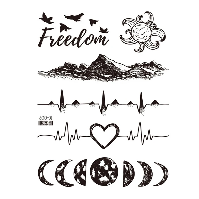 Временные тату-наклейки Sun Moon Mountain для женщин и мужчин, художественные водонепроницаемые татуировки, Летающие птицы, «Свобода», имитация татуировок, наклейки