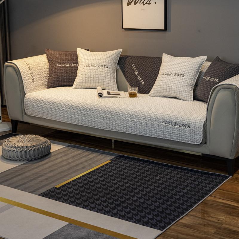 Всесезонная универсальная саржевая хлопковая вышивка японская диванная подушка простая клетчатая диванная подушка полотенце 70*70