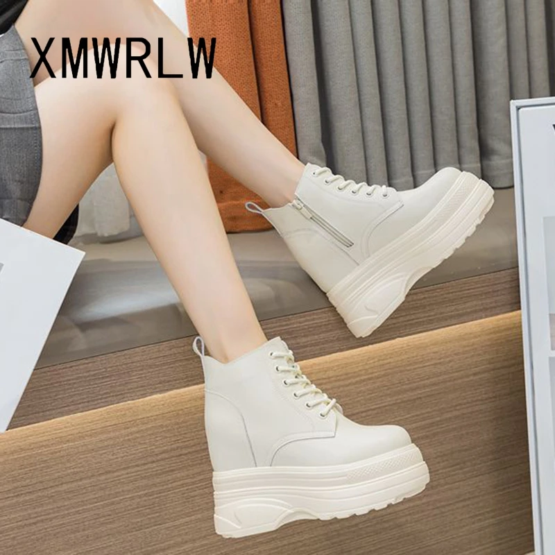 Женские ботильоны XMWRLW, осенняя модная обувь из натуральной кожи на толстой платформе, женские ботильоны, женская обувь с резиновой подошвой