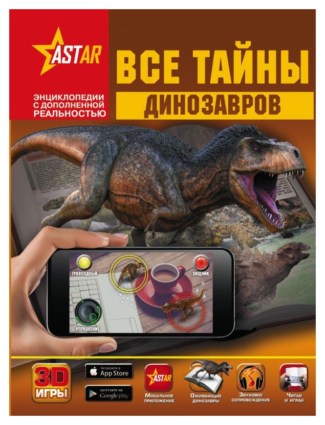 В настоящее время каждый знает, что много лет назад на нашей планете обитали необычные животные — динозавры. Однако никто их не видел вживую, так как давным-давно эти древние ящеры по какой-то неизвестной причине вымерли. Но всё вполне возможно, если вы откроете эту книгу. Ведь у вас в руках уникальное издание с дополненной реальностью (AR) в формате интерактивных 3D-игр. Это значит, что благодаря современным технологиям вы не просто будете читать текст и рассматривать иллюстрации, а сможете прямо на страницах книги увидеть динозавров воочию и даже услышать издаваемые ими звуки! Причем сначала легким движением руки вы заставите ожить этих удивительных животных, а затем побродите среди мирно пасущихся растительноядных гигантов, понаблюдаете, как взлетает птеродактиль, и даже станете свидетелем того, как велоцирапторы нападают на свою жертву. И кто выиграет в этой схватке, а кто проиграет, зависит только от вас! Кроме этого, вас ждет сюрприз: вы сможете сделать фото на память с самим королем динозавров — тираннозавром. А реалистичные визуальные и звуковые спецэффекты, которыми сопровождается игра, сделают чтение этой книги еще более захватывающим. Для среднего школьного возраста.