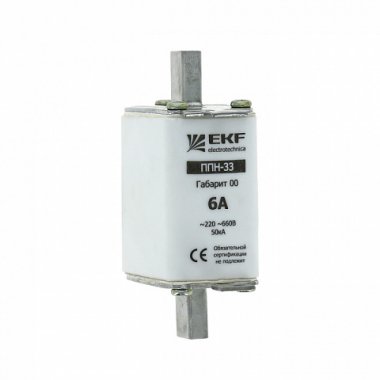 Вставка плавкая EKF PROxima ППН-33, 6А, габарит 00, белый (fus-33/160/6), ППН-33