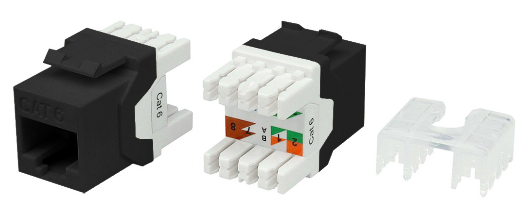Вставка Keystone Hyperline 180 градусов, RJ-45(8P8C) cat.6, 1шт., черный (KJ8-8P8C-C6-180-BK), 180 градусов