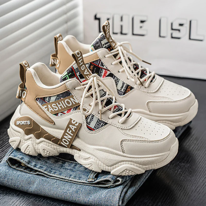 Мужские высокие повседневные кроссовки, всесезонные противоскользящие спортивные кроссовки на открытом воздухе на толстой подошве, студенческая модная прогулочная обувь для мужчин