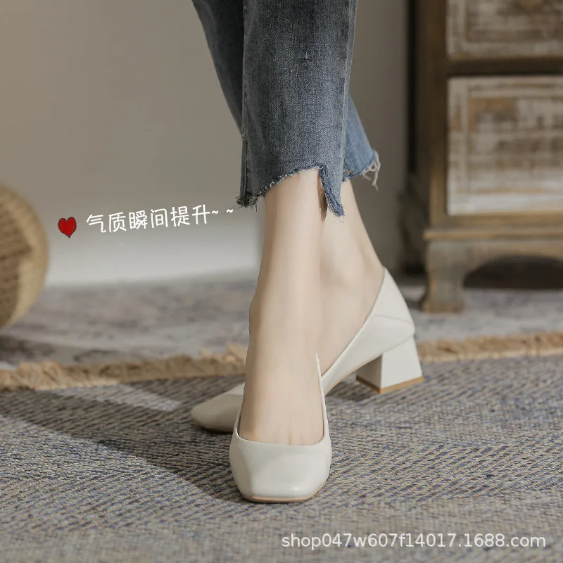 Новые модные и универсальные женские кожаные туфли на одном каблуке из воловьей кожи на среднем каблуке и толстом каблуке.