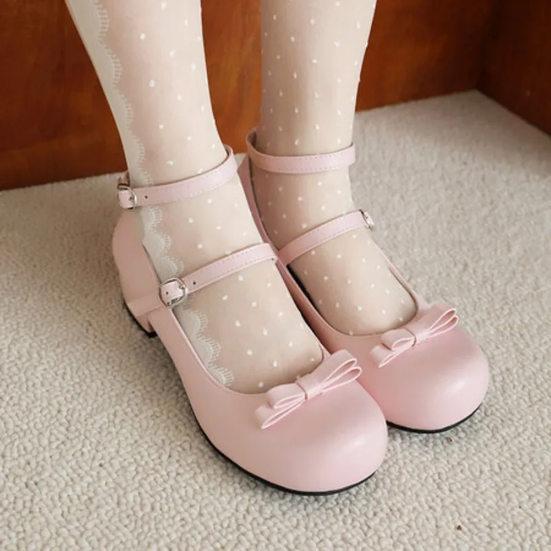 Милые туфли принцессы с узлом-бабочкой, розовые, черные, белые, с пряжкой и ремешком, на блочном каблуке, вечерние, банкетные, женская обувь Мэри Джейн, новинка 2023 г.