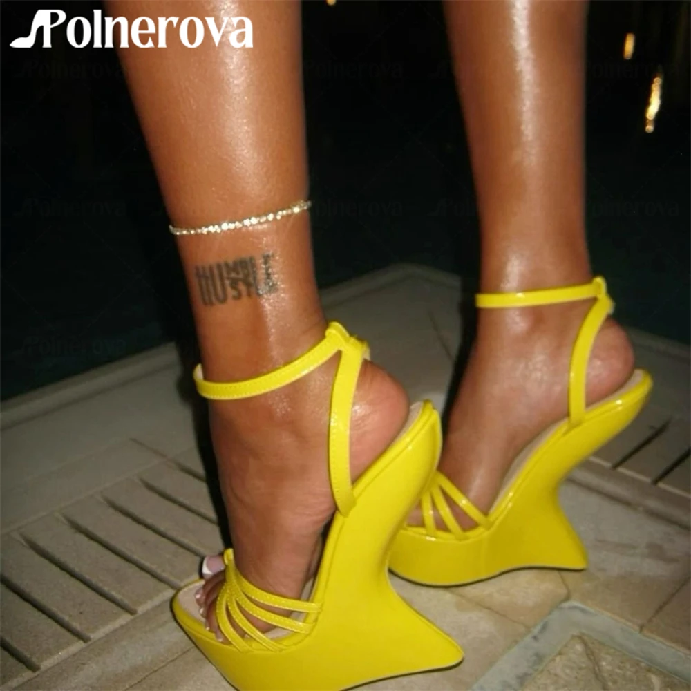 Novelty Platform Sandals Sexy Super High Heels Designer Style Handmade Sandals Custom Color Ankle Strap Strange Heels for Summer