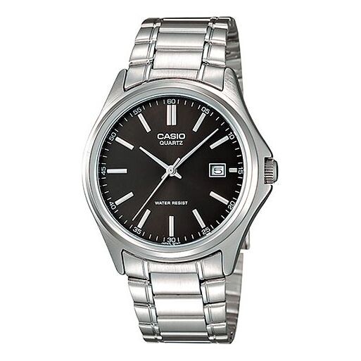 Часы CASIO Waterproof Stainless Steel Strap Black DialSilver Strap Mens BlackSilver Analog, черный
