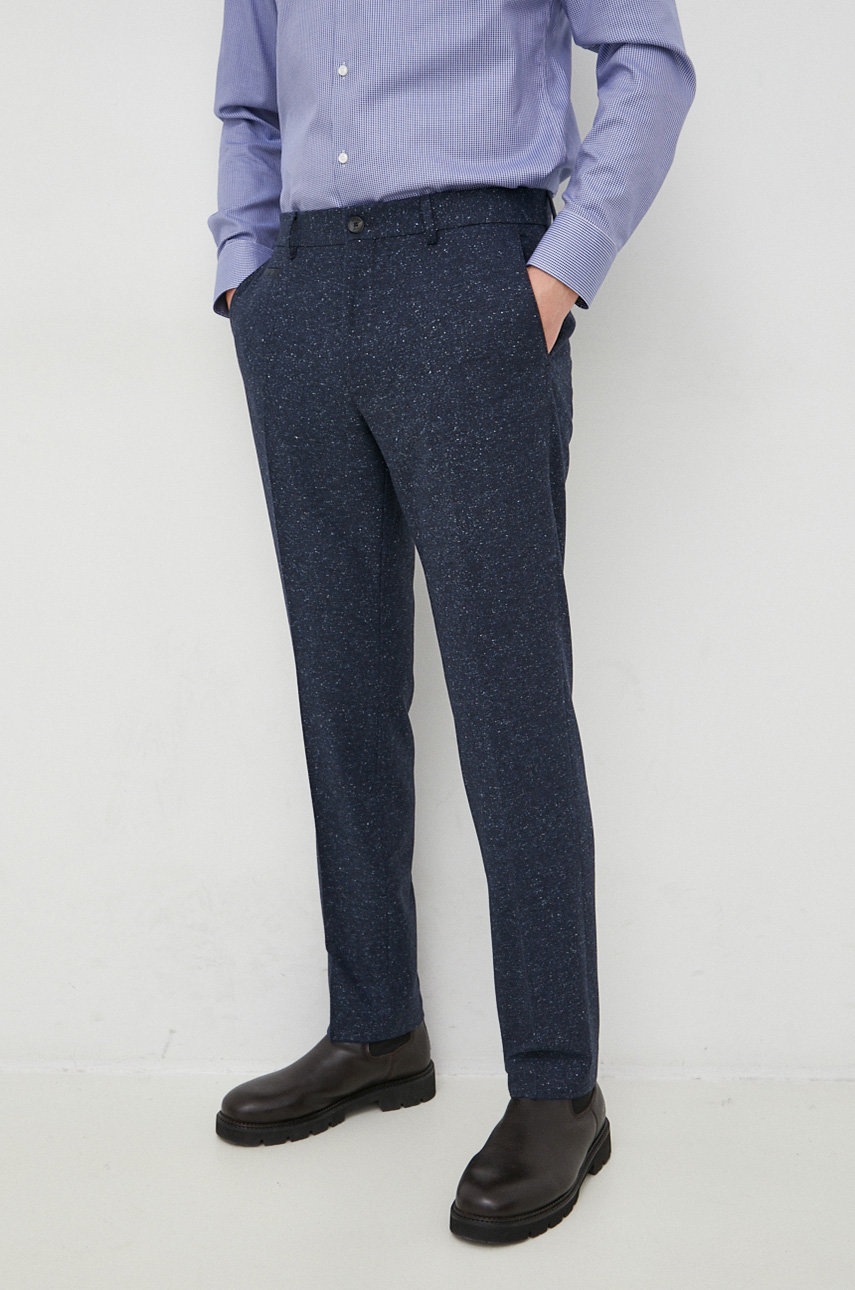 Вълнен панталон BOSS в тъмносиньо с кройка по тялото, Тъмносин