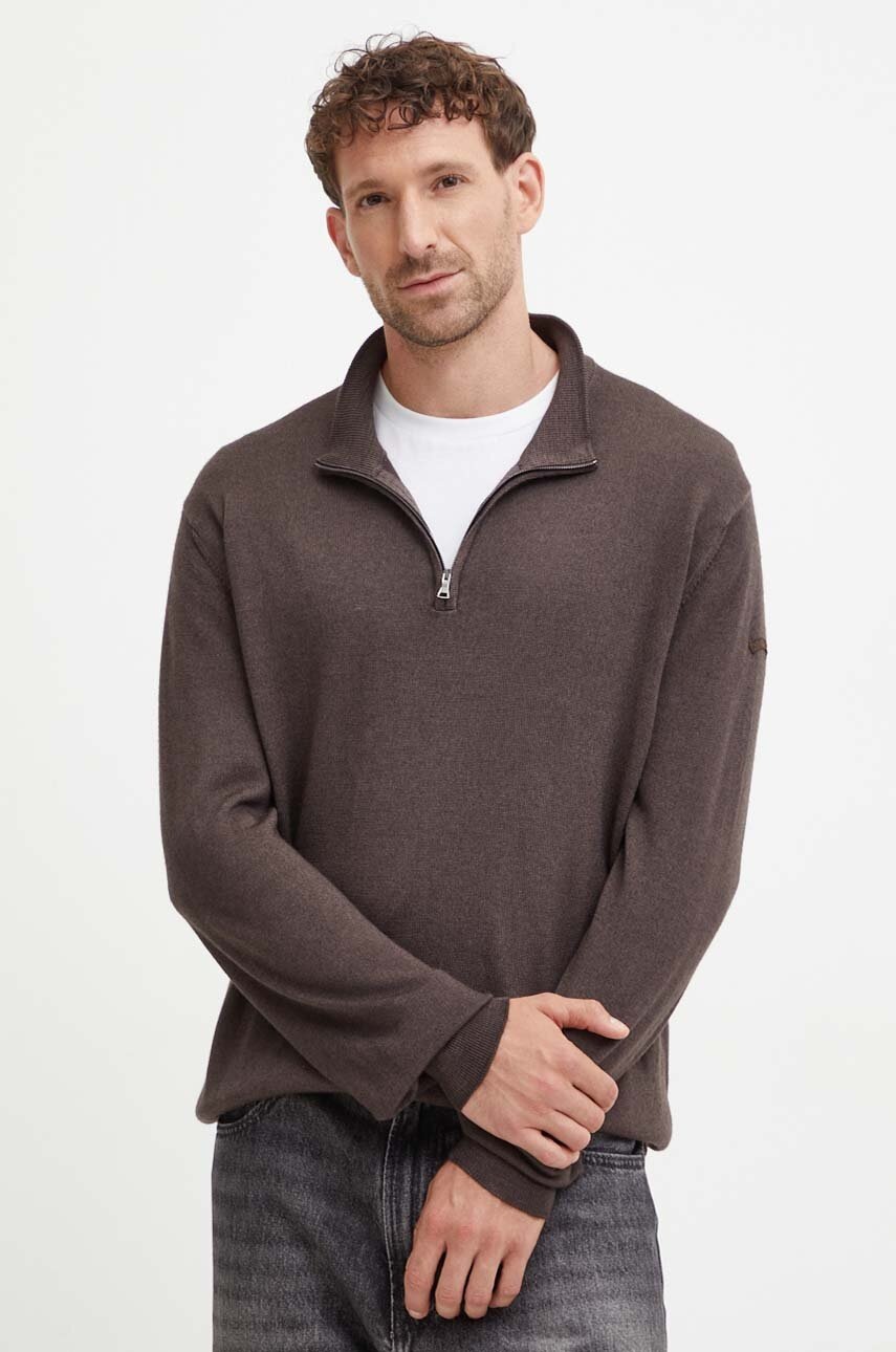 Вълнен пуловер Paul&Shark мъжки в кафяво от лека материя с ниско поло, Кафяв