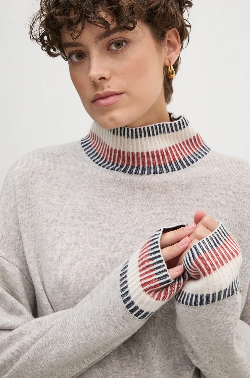 Вълнен пуловер Tommy Hilfiger дамски в сиво с ниско поло WW0WW43239, Сив