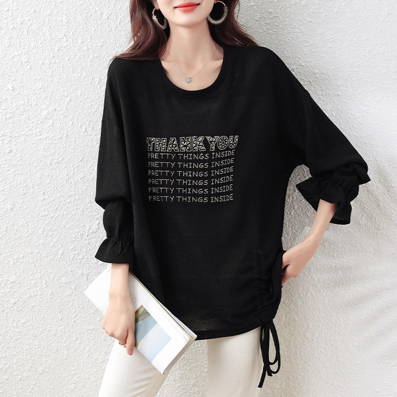 Выглядите ослепительно в этом изысканном черном топе размера плюс с мерцающими стразами и удобным свободным кроем с завязкой на подоле 5XL чёрный