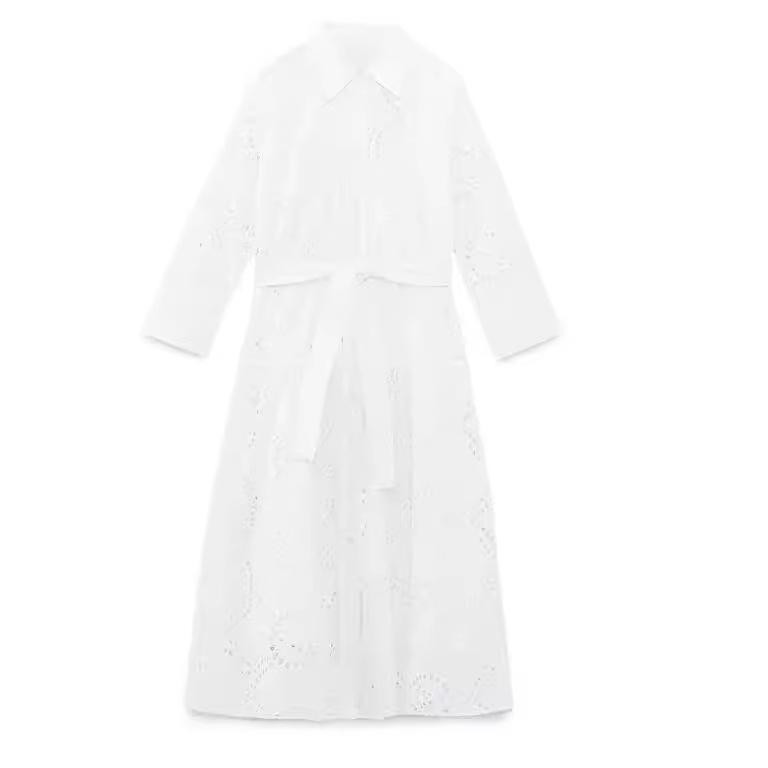 Выдалбливают однотонные платья для женщин с лацканами с коротким рукавом и высокой талией, сращенные на шнуровке, элегантное платье трапециевидной формы, женская модная одежда, большие размеры L белый