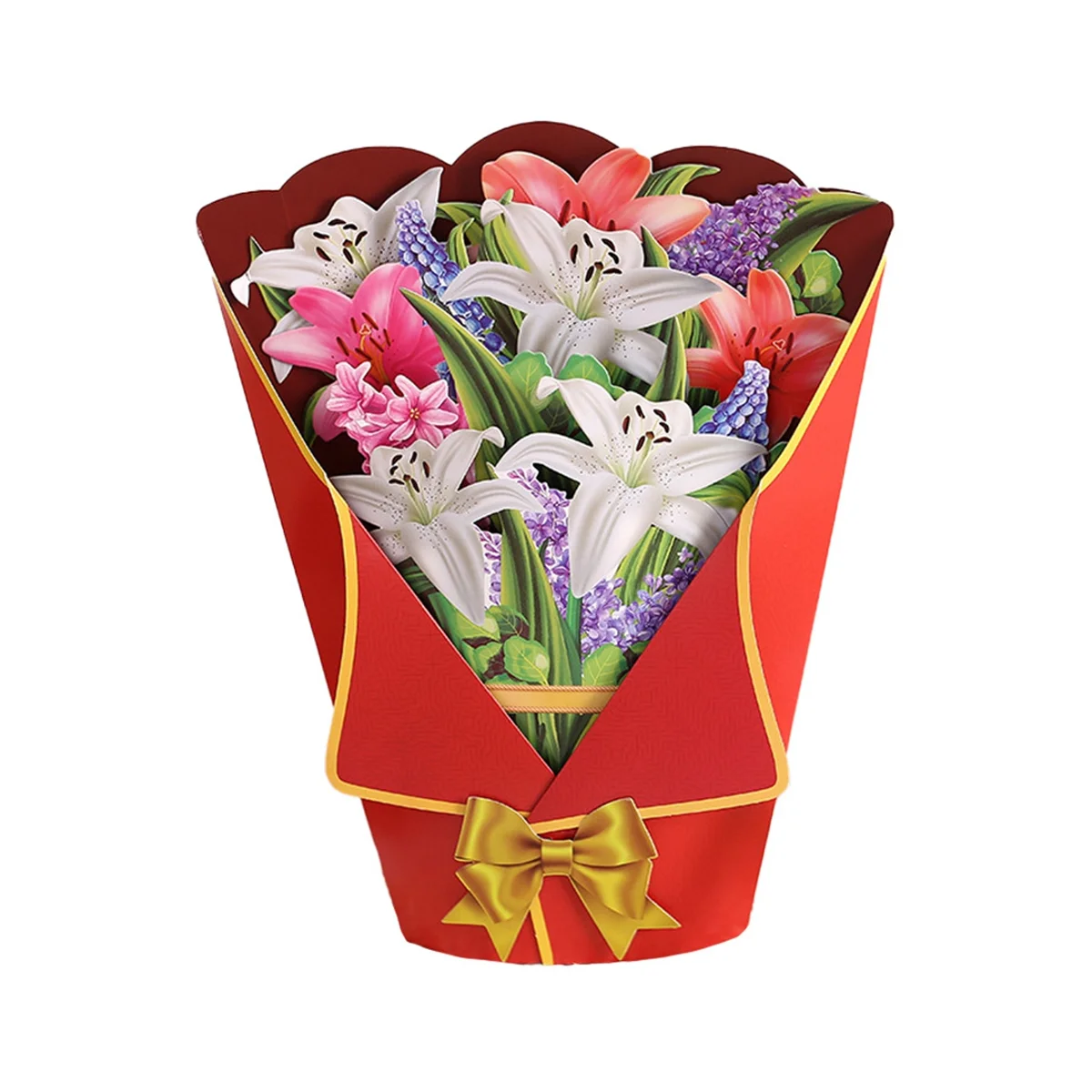 Выдвижная открытка для Дня матери, 3D Цветочные букеты, открытки, поздравительная открытка
