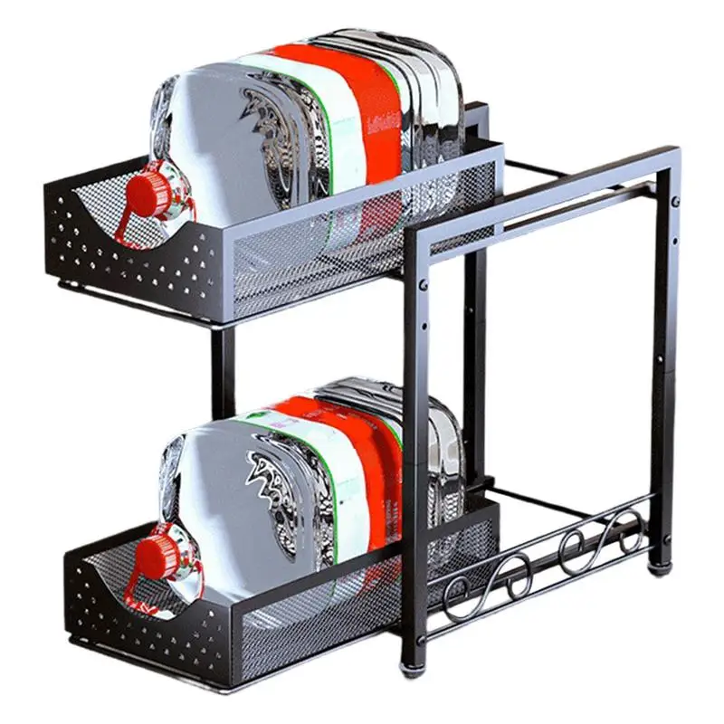 Выдвижной органайзер для шкафа, многофункциональная выдвижная полка для хранения с выдвижной корзиной, 2-уровневые прочные штабелируемые кухонные полки