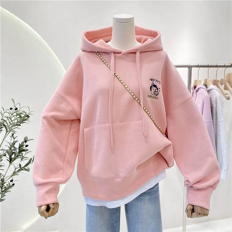L-4XL Oversized Hoodies Womens Vintage Street Sweatshirt Boy Print Puff Sleeve Casual Warm Plus Size Baggy Ladies Pullover Coats